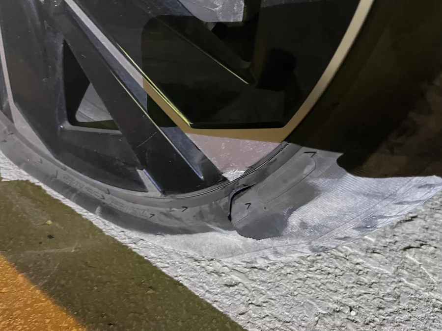 O sırada yoldan geçen Fatih G. yönetimindeki otomobil, sürücünün manevra yapmasına rağmen demirin üzerinden geçti. Yaklaşık 100 metre sürüklenen parçanın etkisiyle aracın sağ tarafındaki iki lastik patladı ve araç güçlükle durabildi.